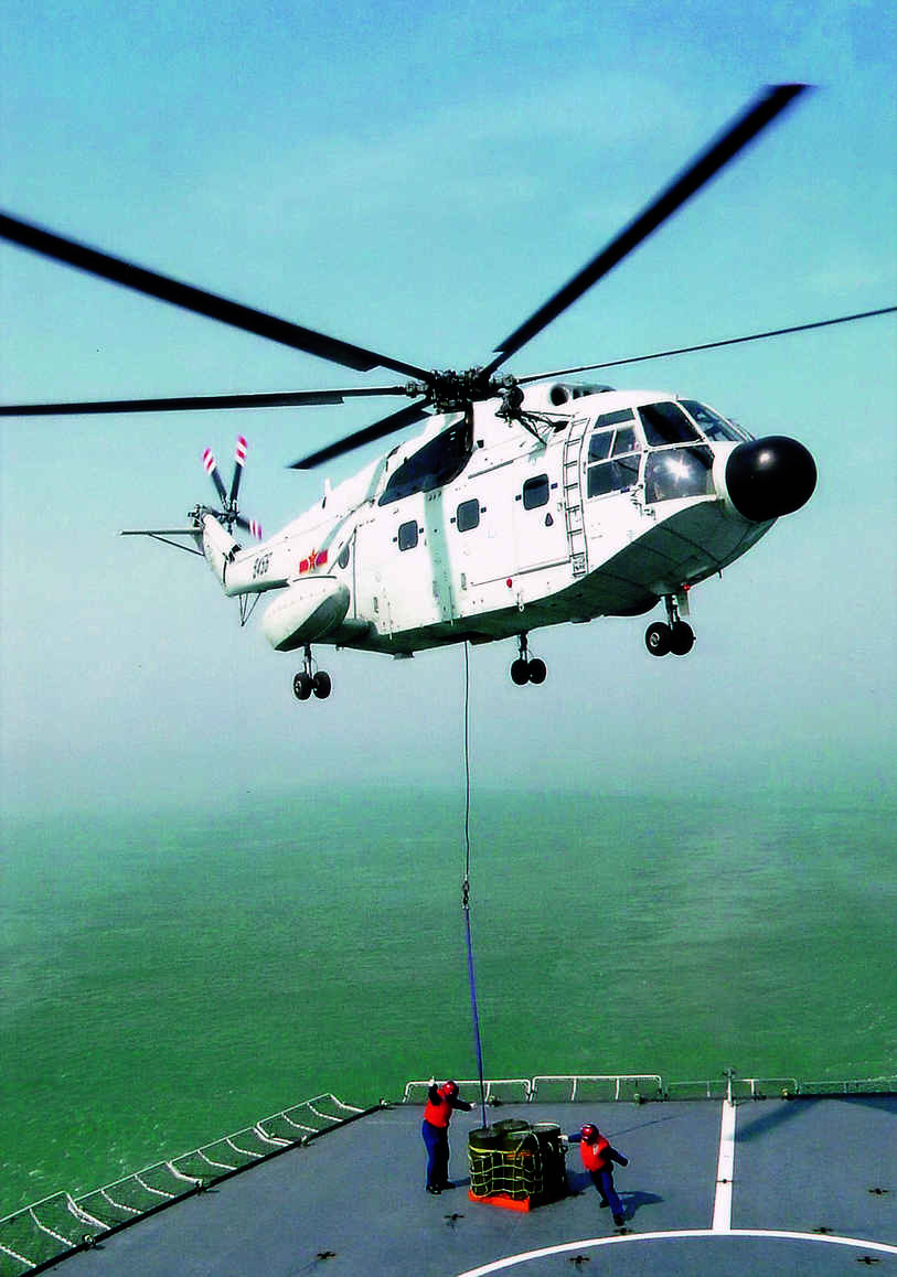 直升机实施海上垂直补给 直升机在海上悬停状态下实施物资补给的设备和器材。 海上垂直补给装置主要有:①直升机外挂吊运补给装置。依靠直升机通过专用外挂吊运和附属设备,将干货物资、包装液货物资在舰艇之间或岸舰之间进行传送。由吊臂、吊索和吊环、吊钩、吊带、吊筐(网)等设备组成。补给时,直升机悬停于舰...