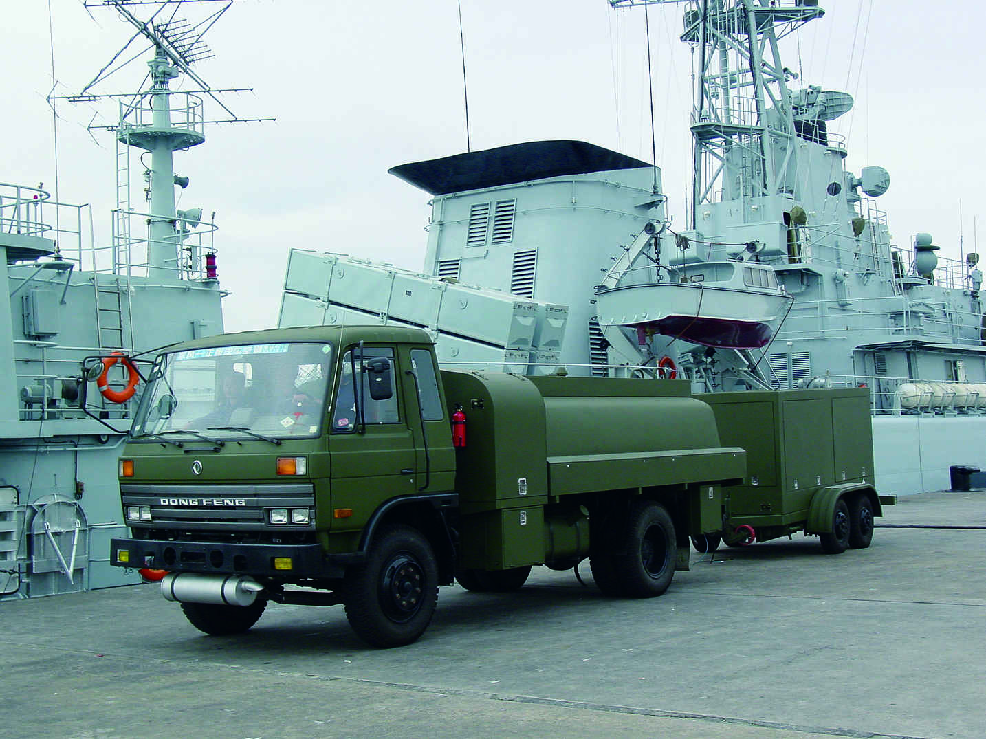 用于收集、处理军港和靠泊舰艇垃圾和油污水的装备。主要有:①军港码头防污装备。有固定式防污处理设备和车载式防污处理装备。固定式防污处理设备由泵站、管路、油污水储存装置、油污水分离装置等固定设备组成。用于将舰艇舱底的油污水接纳至岸进行储存或处理。车载式防污处理装备主要有军港油污水接纳处理车组等,车组...