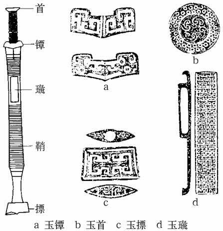 中国古代装配玉制剑具的剑。出现于东周时期。玉剑具共四件:玉首(剑柄的玉把头)、玉镡(玉剑格)、玉璏(玉剑扣)和玉摽(剑室的玉包尾)。其中首和镡装在剑上,璏和摽装在鞘上。已发现的年代最早之例是春秋晚期前段的,上面只有玉首和玉镡,春秋晚期后段的剑上才出现玉璏和玉摽。最兴盛的时期是汉代,四件玉具齐备的...