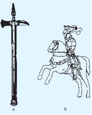 a意大利16世纪骑兵用钉头锤b使用钉头锤的欧洲中世纪骑兵 中世纪欧洲和中东地区主要用于啄击的格斗兵器。基本结构是在柄的一端横装一金属锤头。锤头多为钢铁质,少数以青铜制作,前端长而尖利,后端短而钝重,有的还在锤头上装一枚竖刺。因其尖头与鸟嘴相似,故在欧洲又称鸟嘴锤或鹰嘴锤。柄一般是木质,以铁片、...