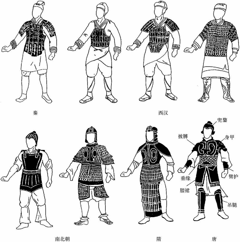 中国古代主要由胸甲和背甲扣联而成的铠甲。因外观与汉晋时期服装中的“两当”(�裆)相似,故名。系由以甲片编联成整体的胸甲和背甲,在双肩以带前后扣联,适于骑兵披用。两当铠的雏形出现于西汉时期。陕西咸阳杨家湾出土的西汉陶俑中,有披着胸、背两部分护甲并以带在肩头结系的士兵形象。两当铠的名称正式出现于三国...