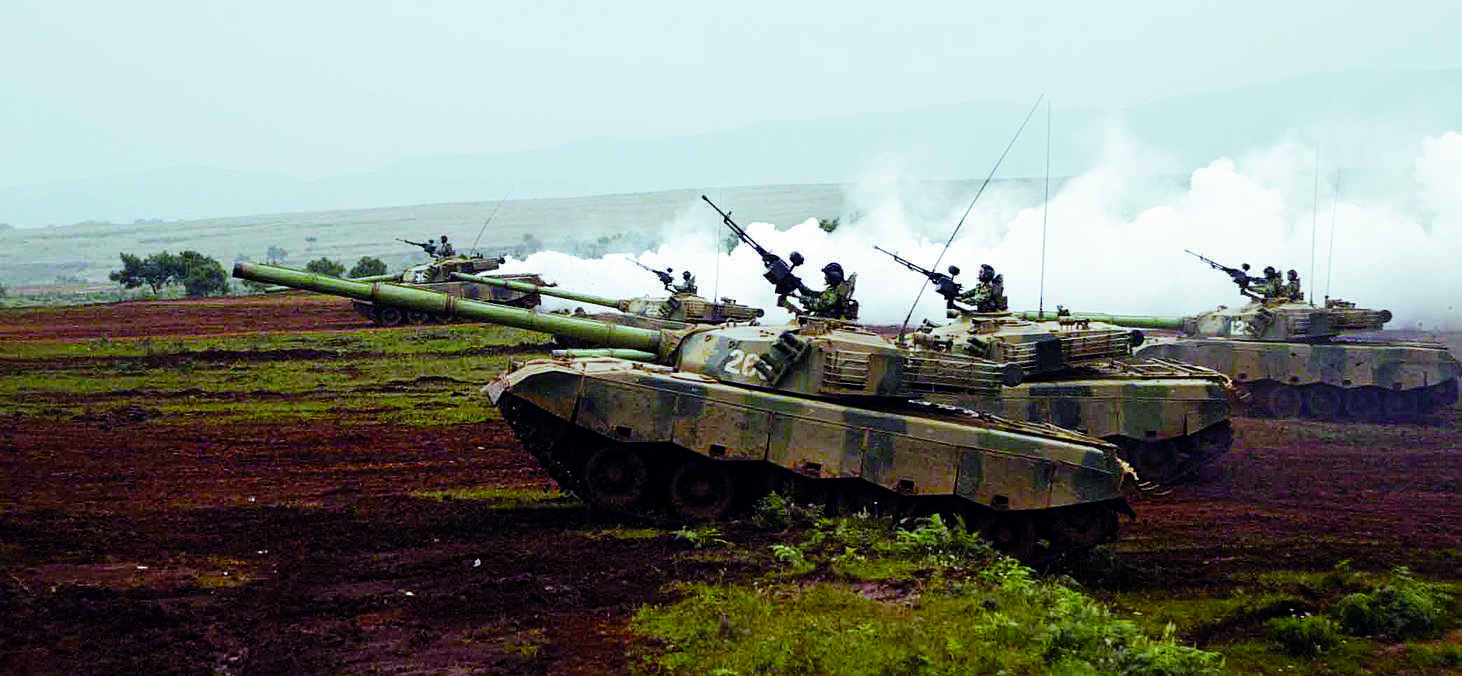 存在并贯穿于军事运动的全过程,决定和影响其他诸矛盾的矛盾。军事运动中包含敌与我、强与弱、优与劣、攻与防、主体与客体、需要与可能、主动与被动、数量与质量、潜力与实力等诸多矛盾。在这一矛盾体系中,敌对双方之间的对抗是军事运动的基本矛盾。中国人民解放军某部坦克分队在演习中展开 敌对双方之间的对抗,既...