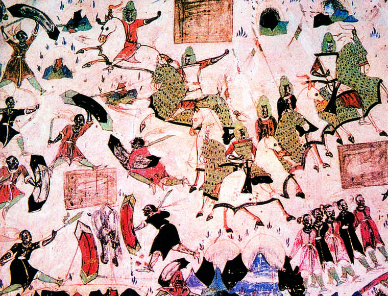 中国从三国到南北朝期间各阶级、民族、政治集团及其军事家、兵学家关于战争和军队等问题的理性认识。反映南北朝时期重装骑兵作战的壁画 这一时期介于汉、唐盛世之间,长期分裂割据,先后建立过30多个王朝和政权。三国时期,为魏、蜀、吴鼎立;两晋时期,由西晋的短暂统一,分裂为北方的十六国和南方的东晋;南北朝...