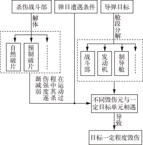 战斗部形成或释放的破片场对目标的毁伤作用。破片命中目标时具有侵彻或穿透作用,可破坏目标结构、削弱目标强度,速度足够高的破片还具有引爆、引燃作用。破片杀伤战斗部适于对付有生力量、轻装甲或无装甲车辆、飞行器(固定翼飞机、直升机、导弹)、雷达、发射架等多类目标。 破片有自然破片、预制破片和预控破片三...