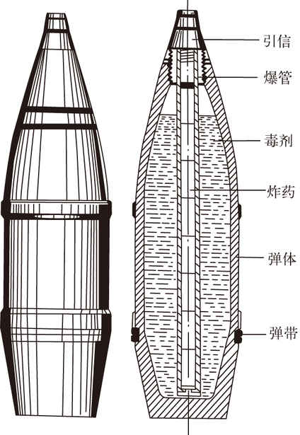装有毒剂或毒剂前体的炮弹。又称毒剂炮弹、毒气炮弹。按发射方式和使用火炮,可分为前装化学炮弹和后装化学炮弹。前装化学炮弹从炮口装入,自行下滑而击发,发射后,弹丸靠尾翼稳定,弹道较弯曲,如化学迫击炮弹;后装化学炮弹从炮管后部装入,发射后,弹丸靠旋转稳定,弹道较平直,如化学榴弹炮弹、化学加农炮弹和化学...