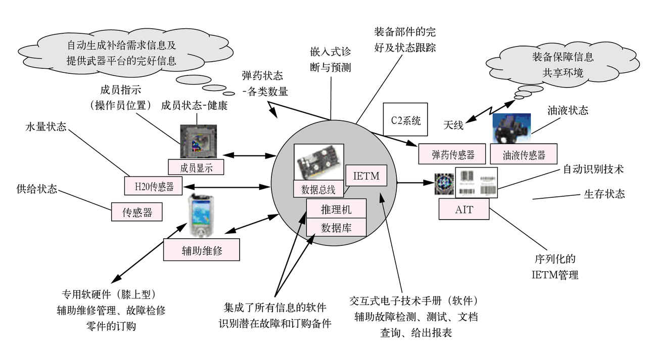 运用信息技术实施装备维修保障工作的方法和手段。装备维修保障信息化技术的应用,是实现装备状态监控、装备维护和修理、装备维修保障管理和装备维修保障效果评估信息化,以及装备全寿命过程维修保障信息资源共享的基础,对提高装备维修保障系统运行效率发挥着重要作用。装备信息获取技术示意图 主要内容 包括装备维...