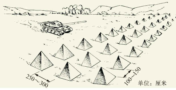 用混凝土或型钢制成三角锥体状的移动式桩砦类障碍物。三角锥体边长一般为1.2米。通常预先制作,运至现场设置。为便于运输和设置,制作时可预设吊环。通常设置在隘路、山垭口、林区通道和城市街道等敌坦克必经之路,成数列交错配置,间隔1~1.5米,列距2.5~3米,纵深不小于20米。可单独设置成障碍地段,也...