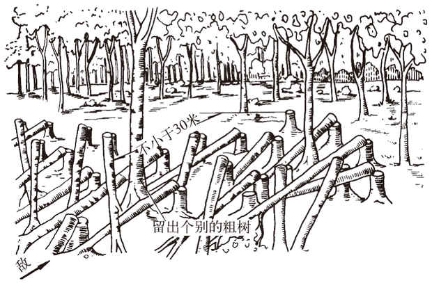 用伐倒树木构成形似鹿角的筑城障碍物。古称鹿角砦。有树干鹿砦和树枝鹿砦两种。通常设置在森林边缘、林间道路和有行道树的道路上。树干鹿砦主要用以防装甲战斗车辆。设置时将直径20厘米以上的树,在距地面0.6~1.5米处交叉伐倒或炸倒,使树冠朝向敌方,树干与树桩不完全断离,并在折断处用铁丝系连。设置纵深一...