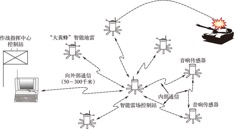 具有自主作战、自我管理功能的地雷场。有的国家称智能战斗警戒系统。一般由智能地雷、传感器和智能控制站组成。地雷场布雷密度低,单雷控制区域大,具备敌我识别、环境自适应能力和对地雷场控制区域内的态势具有感知功能,有的智能地雷还具备自主移动填补空缺雷位、自行恢复雷场障碍的能力。智能地雷场除具有障碍作用外...